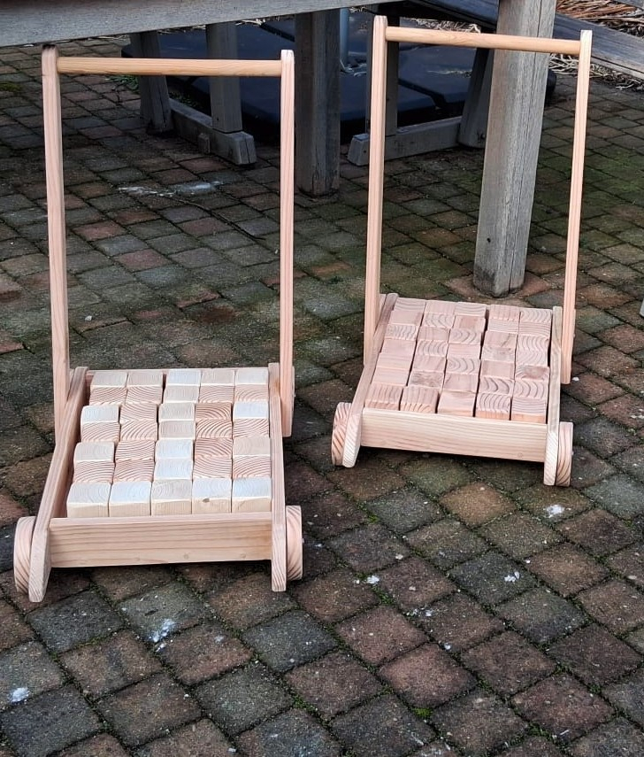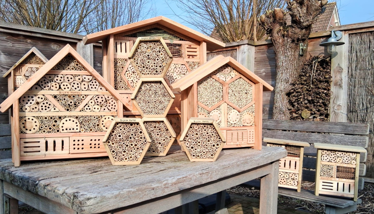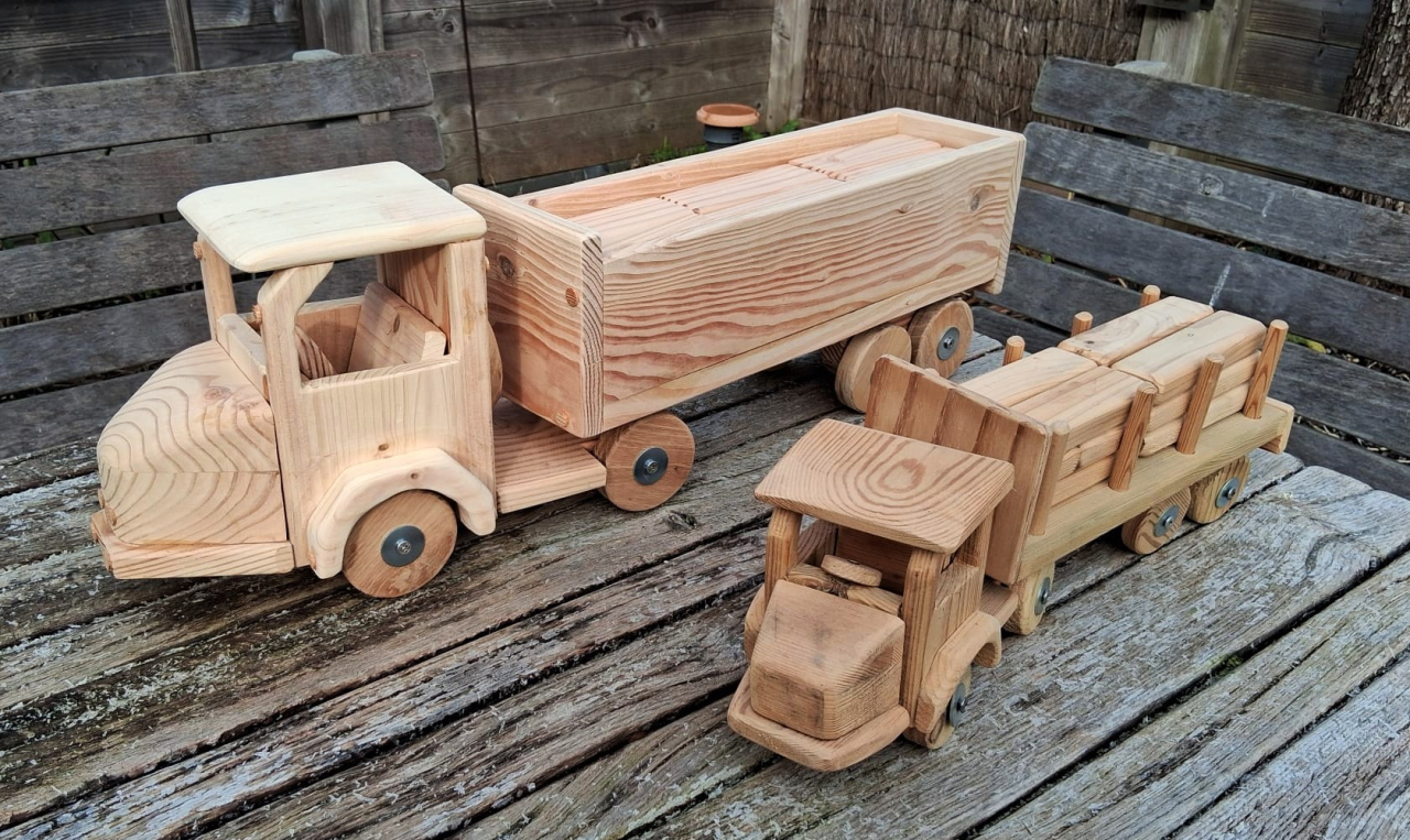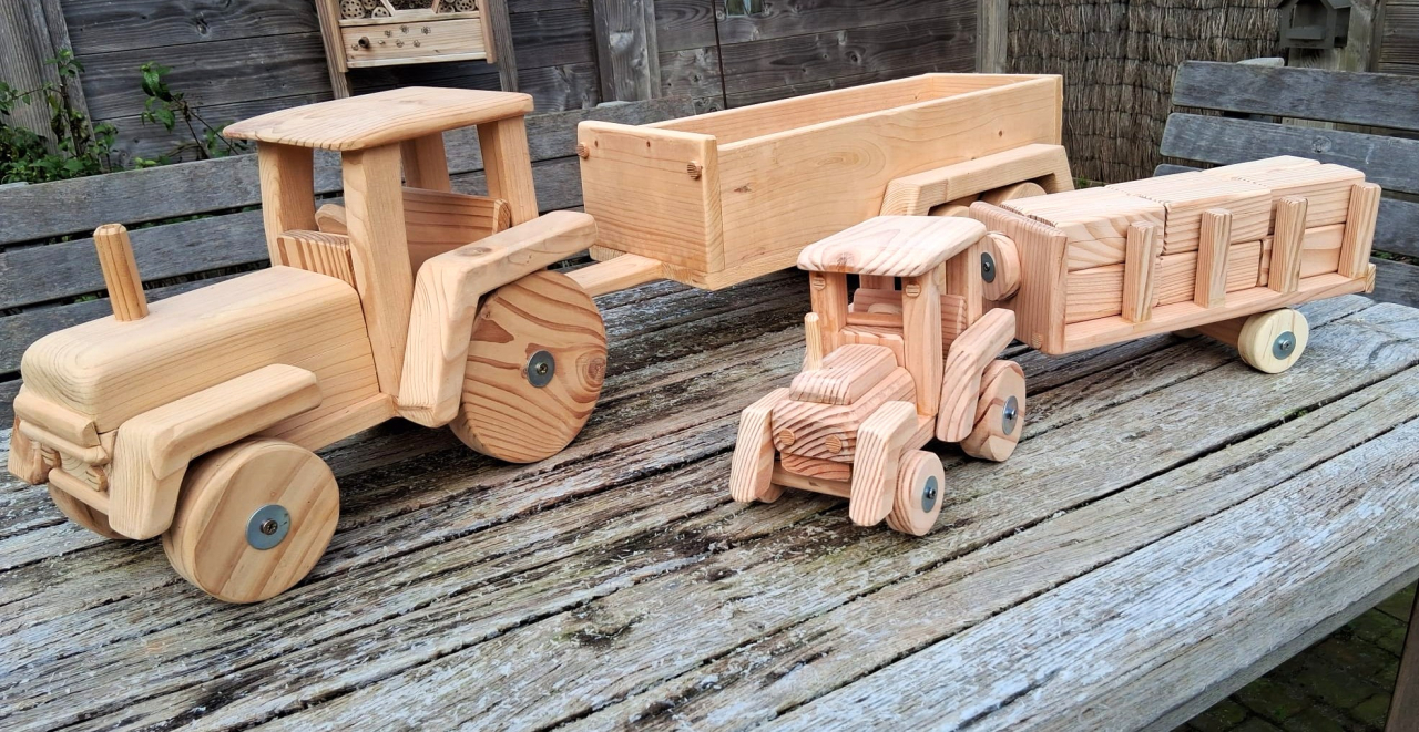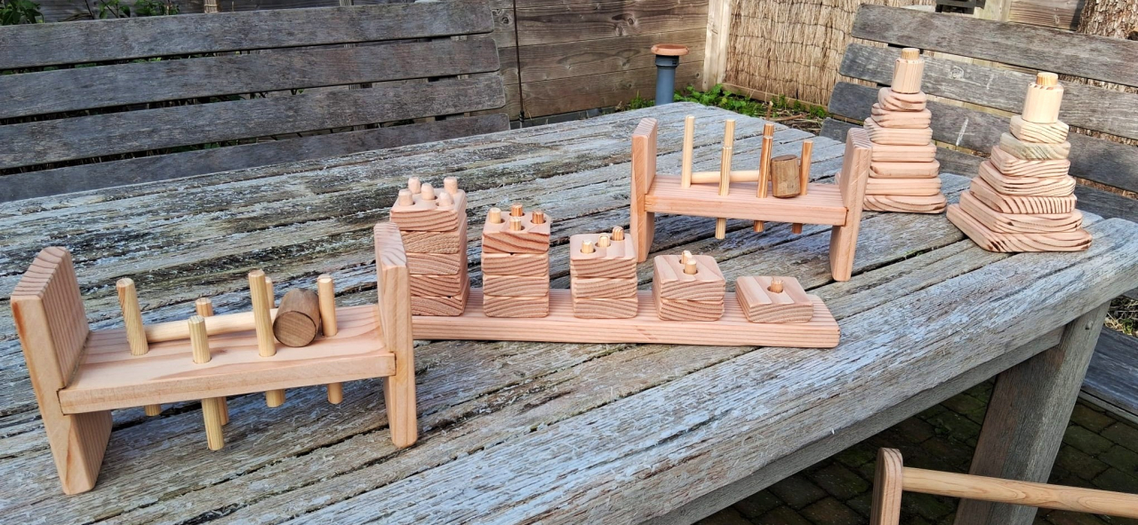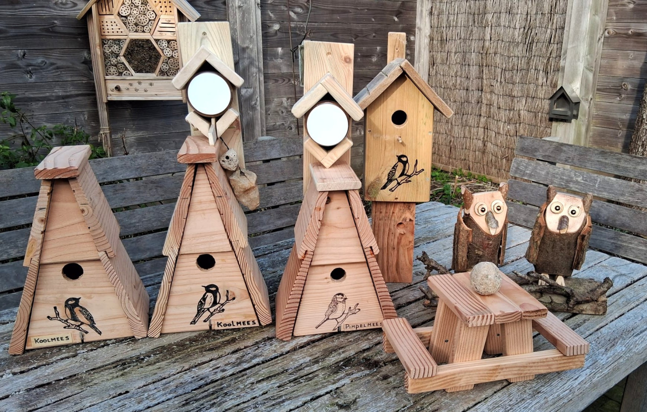 Houten speelgoed en nestkastjes van onbewerkt hout: